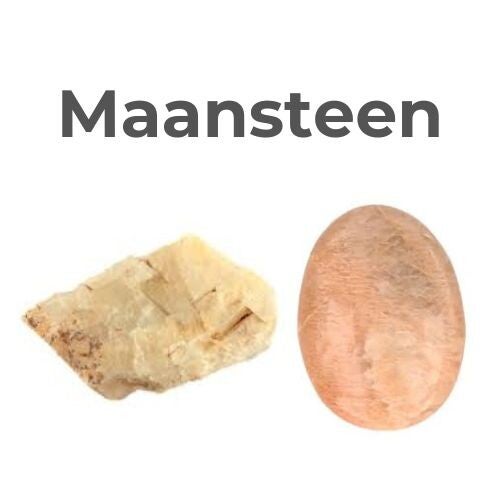 Maansteen is een veldspaatmineraal dat bekend staat om zijn zachte glans (adularescentie) en sterke connectie met de maanenergie. Deze steen symboliseert vrouwelijke kracht, intuïtie en emotionele harmonie.
